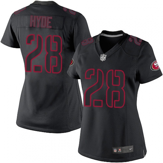 Home>NFL>San Francisco 49ers>Carlos Hyde>Women's Nike San Francisco 49ers #28 Carlos Hyde Limited Black Impact NFL Jersey