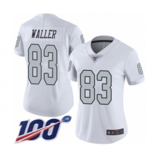 >Women's Oakland Raiders #83 Darren Waller Limited White Rush Vapor Untouchable 100th Season Football Jersey