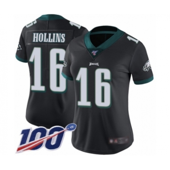 Women's Philadelphia Eagles #16 Mack Hollins Black Alternate Vapor Untouchable Limited Player 100th Season Football Jersey