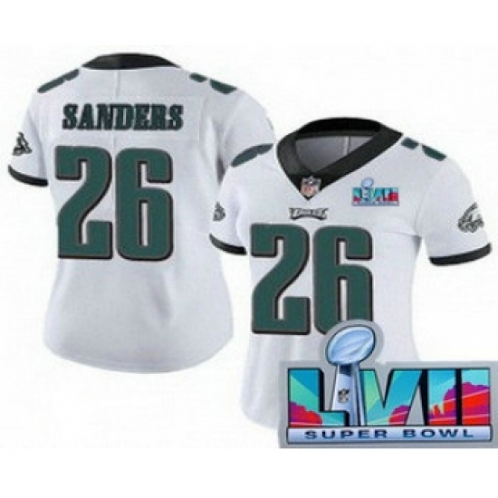 >Women's Philadelphia Eagles #26 Miles Sanders Limited White Super Bowl LVII Vapor Jersey