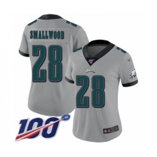 >Women's Philadelphia Eagles #28 Wendell Smallwood Limited Silver Inverted Legend 100th Season Football Jersey