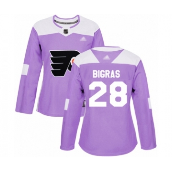 >Women's Philadelphia Flyers #28 Chris Bigras Authentic Purple Fights Cancer Practice Hockey Jersey