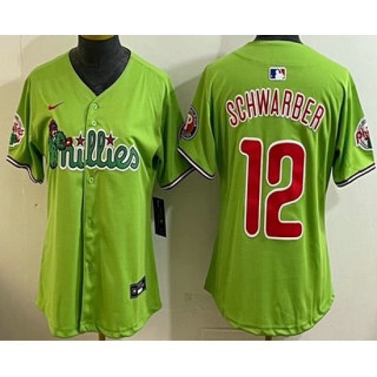 Women's Philadelphia Phillies #12 Kyle Schwarber Light Green Fashion Cool Base Jersey