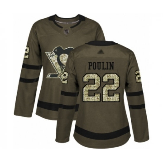 Women's Pittsburgh Penguins #22 Samuel Poulin Authentic Green Salute to Service Hockey Jersey