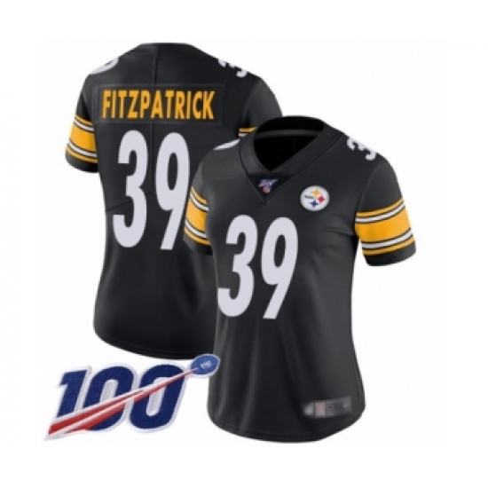 >Women's Pittsburgh Steelers #39 Minkah Fitzpatrick Black Team Color Vapor Untouchable Limited Player 100th Season Football Jersey