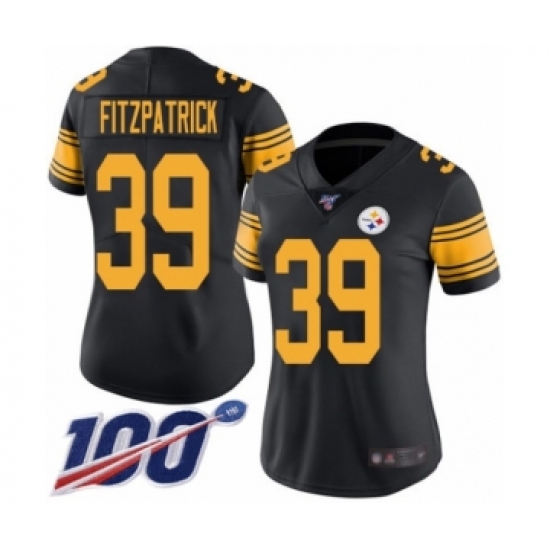 >Women's Pittsburgh Steelers #39 Minkah Fitzpatrick Limited Black Rush Vapor Untouchable 100th Season Football Jersey