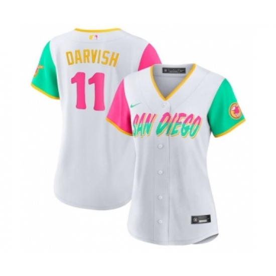 >Women's San Diego Padres #11 Yu Darvish White 2022 City Connect Cool Base Stitched Baseball Jersey(Run Small)