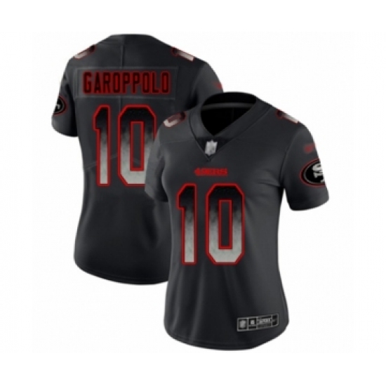 >Women's San Francisco 49ers #10 Jimmy Garoppolo Limited Black Smoke Fashion Football Jersey