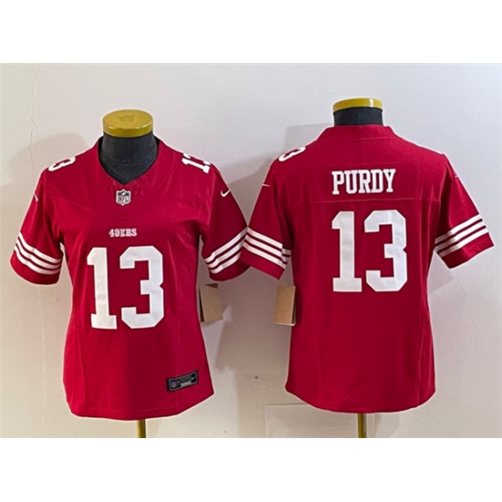 >Women's San Francisco 49ers #13 Brock Purdy Red 2023 F.U.S.E. Vapor Untouchable Football Stitched Jersey