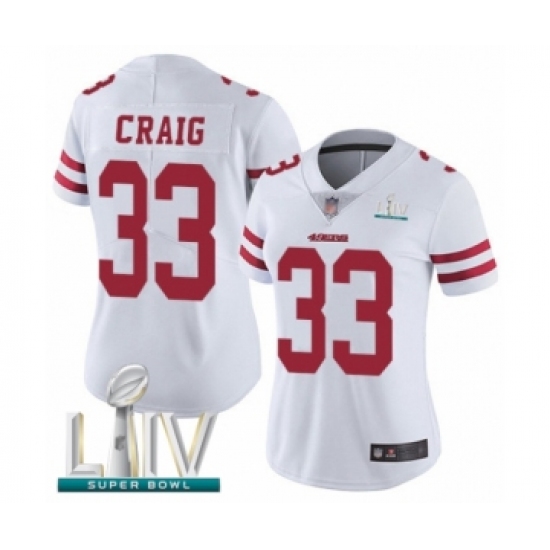 >Women's San Francisco 49ers #33 Roger Craig White Vapor Untouchable Limited Player Super Bowl LIV Bound Football Jersey