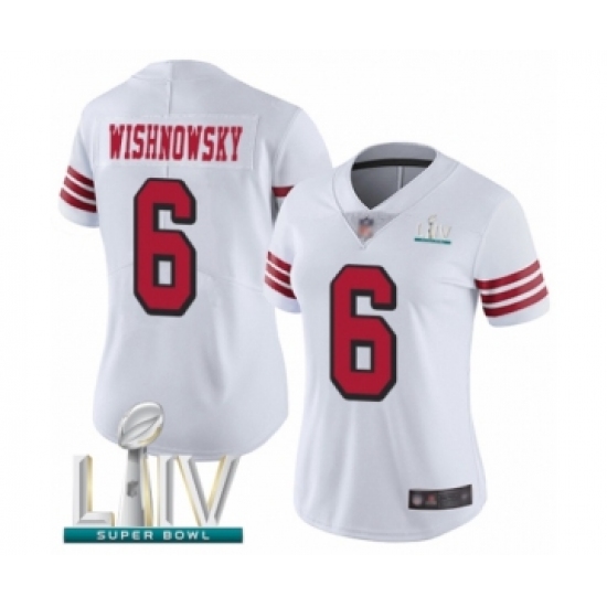 Women's San Francisco 49ers #6 Mitch Wishnowsky Limited White Rush Vapor Untouchable Super Bowl LIV Bound Football Jersey