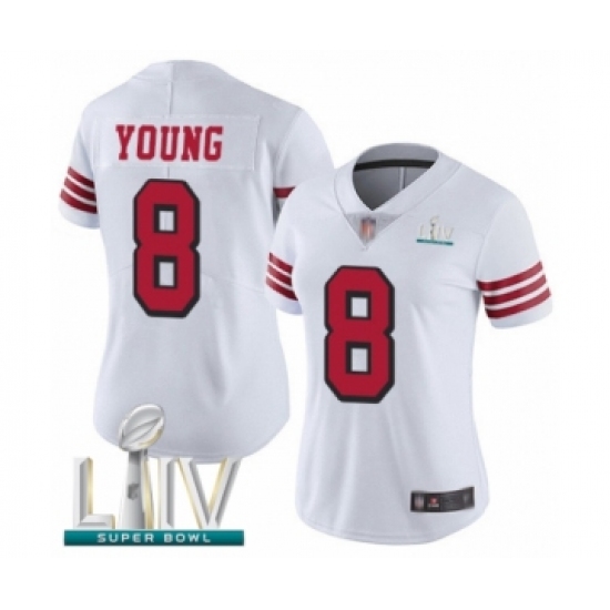 >Women's San Francisco 49ers #8 Steve Young Limited White Rush Vapor Untouchable Super Bowl LIV Bound Football Jersey
