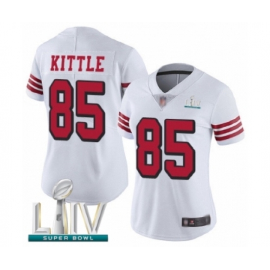 >Women's San Francisco 49ers #85 George Kittle Limited White Rush Vapor Untouchable Super Bowl LIV Bound Football Jersey