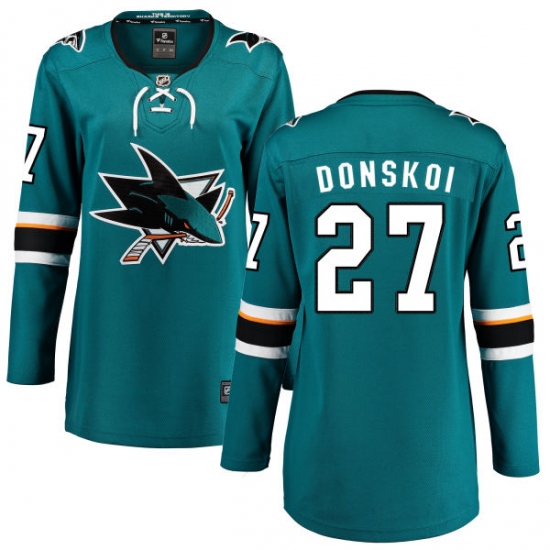 Home>NHL>San Jose Sharks>Joonas Donskoi>Women's San Jose Sharks #27 Joonas Donskoi Fanatics Branded Teal Green Home Breakaway NHL Jersey