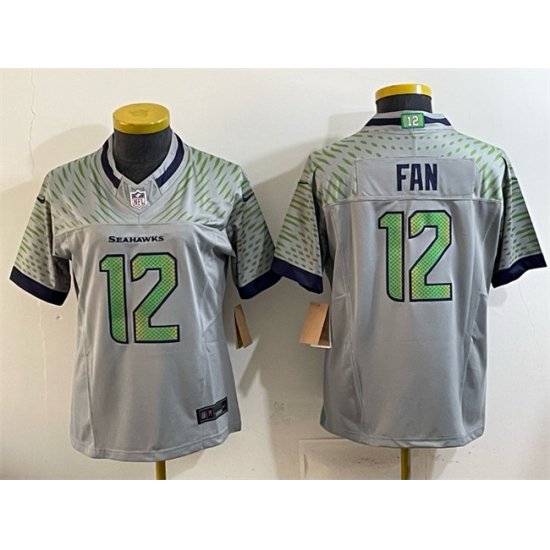 >Women's Seattle Seahawks #12 Fan Grey 2025 F.U.S.E. “Rivalries” Vapor Untouchable Limited Stitched Football Jersey(Run Small)