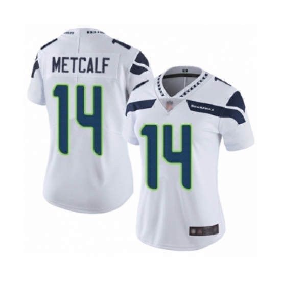 >Women's Seattle Seahawks #14 D.K. Metcalf White Vapor Untouchable Limited Player Football Jersey