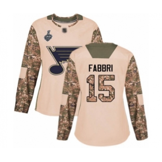 Women's St. Louis Blues #15 Robby Fabbri Authentic Camo Veterans Day Practice 2019 Stanley Cup Final Bound Hockey Jersey