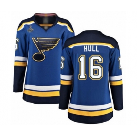 Women's St. Louis Blues #16 Brett Hull Authentic Royal Blue Home 2019 Stanley Cup Final Bound Hockey Jersey