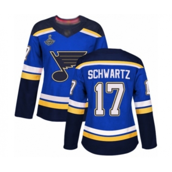 Women's St. Louis Blues #17 Jaden Schwartz Authentic Royal Blue Home 2019 Stanley Cup Champions Hockey Jersey