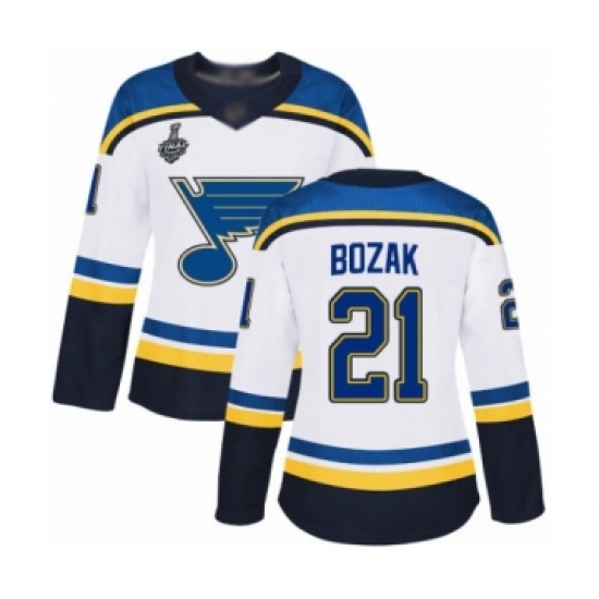 Women's St. Louis Blues #21 Tyler Bozak Authentic White Away 2019 Stanley Cup Final Bound Hockey Jersey