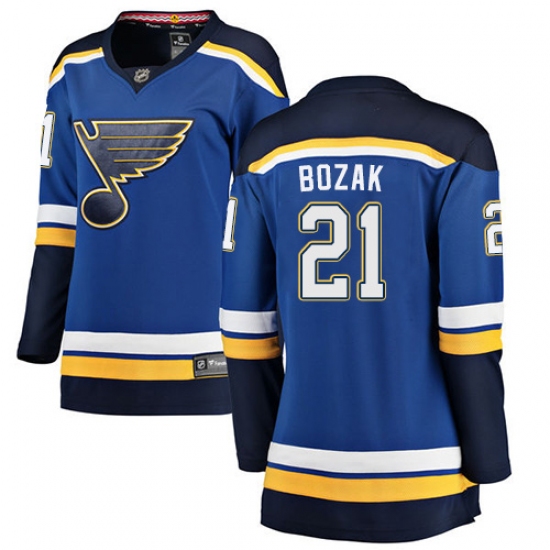 >Women's St. Louis Blues #21 Tyler Bozak Fanatics Branded Royal Blue Home Breakaway NHL Jersey