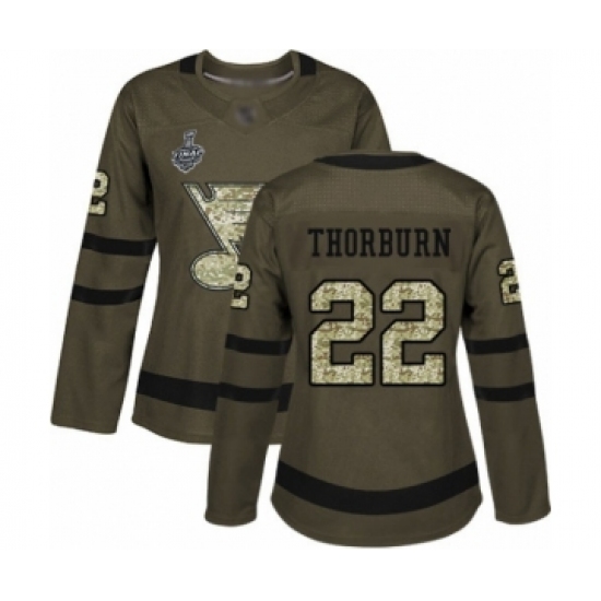 Women's St. Louis Blues #22 Chris Thorburn Authentic Green Salute to Service 2019 Stanley Cup Final Bound Hockey Jersey