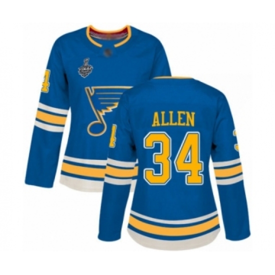 Women's St. Louis Blues #34 Jake Allen Authentic Navy Blue Alternate 2019 Stanley Cup Final Bound Hockey Jersey