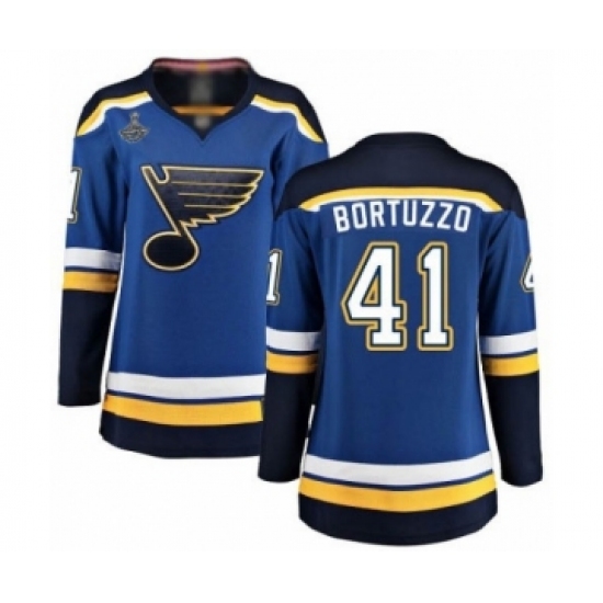 >Women's St. Louis Blues #41 Robert Bortuzzo Fanatics Branded Royal Blue Home Breakaway 2019 Stanley Cup Champions Hockey Jersey