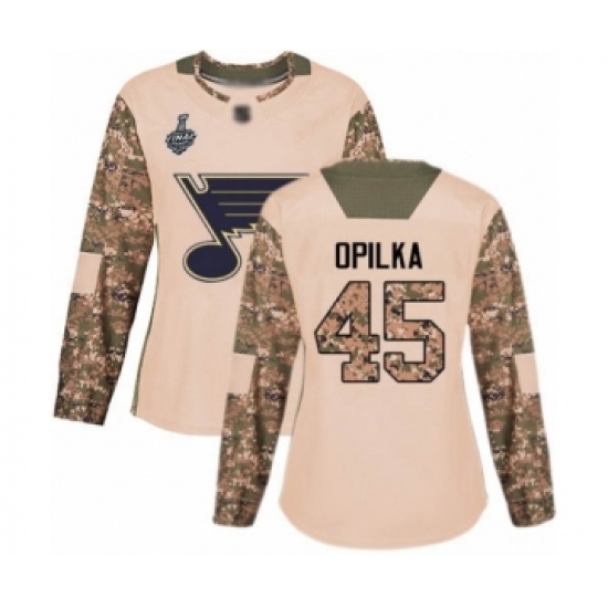 Women's St. Louis Blues #45 Luke Opilka Authentic Camo Veterans Day Practice 2019 Stanley Cup Final Bound Hockey Jersey