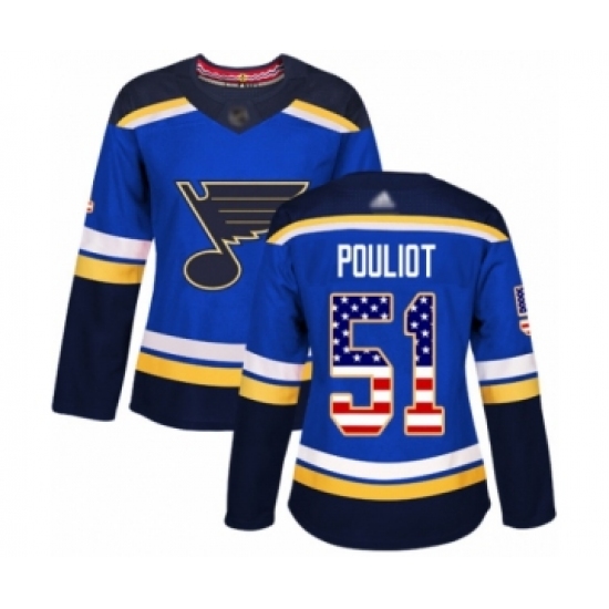Women's St. Louis Blues #51 Derrick Pouliot Authentic Blue USA Flag Fashion Hockey Jersey