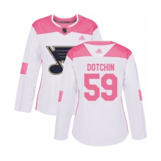 Women's St. Louis Blues #59 Jake Dotchin Authentic White Pink Fashion Hockey Jersey
