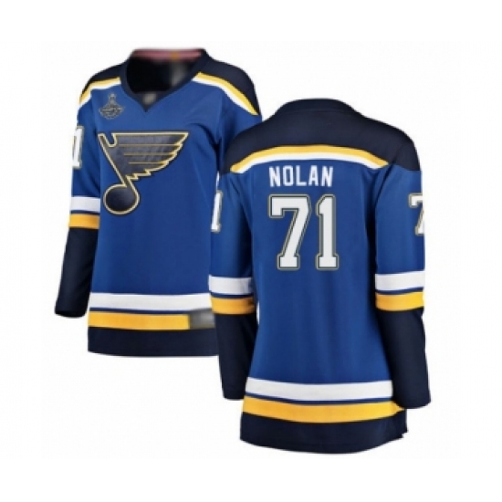 >Women's St. Louis Blues #71 Jordan Nolan Fanatics Branded Royal Blue Home Breakaway 2019 Stanley Cup Champions Hockey Jersey