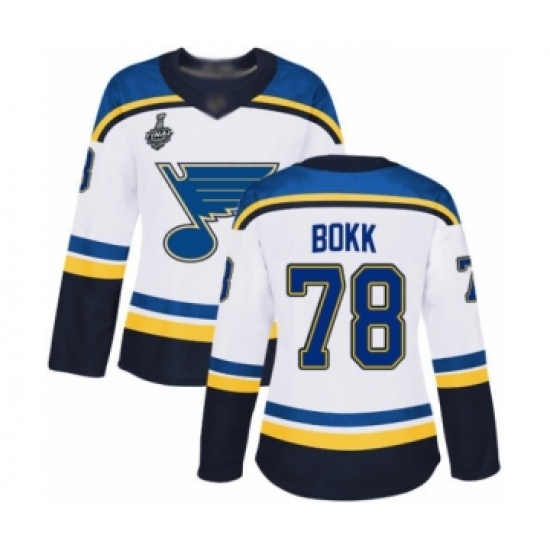 Women's St. Louis Blues #78 Dominik Bokk Authentic White Away 2019 Stanley Cup Final Bound Hockey Jersey