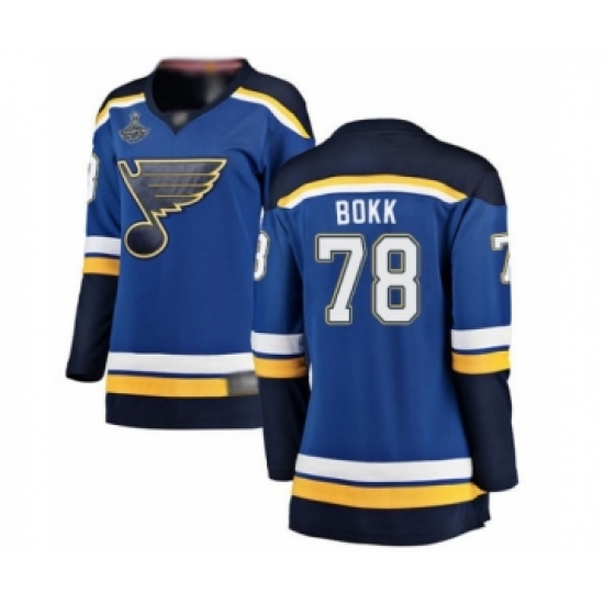 Women's St. Louis Blues #78 Dominik Bokk Fanatics Branded Royal Blue Home Breakaway 2019 Stanley Cup Champions Hockey Jersey