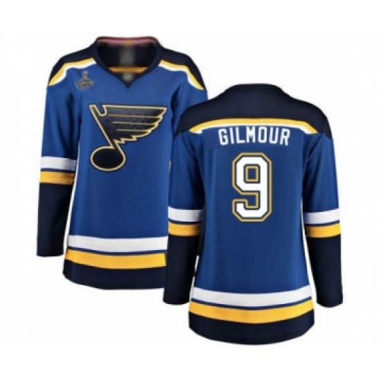 Women's St. Louis Blues #9 Doug Gilmour Authentic Royal Blue Home 2019 Stanley Cup Champions Hockey Jersey