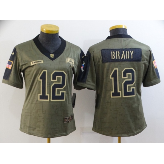 >Women's Tampa Bay Buccaneers #12 Tom Brady Nike Olive 2021 Salute To Service Limited Player Jersey