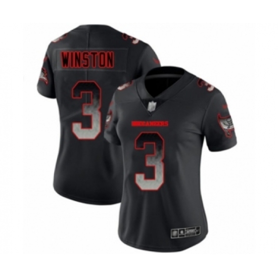 >Women's Tampa Bay Buccaneers #3 Jameis Winston Limited Black Smoke Fashion Football Jersey
