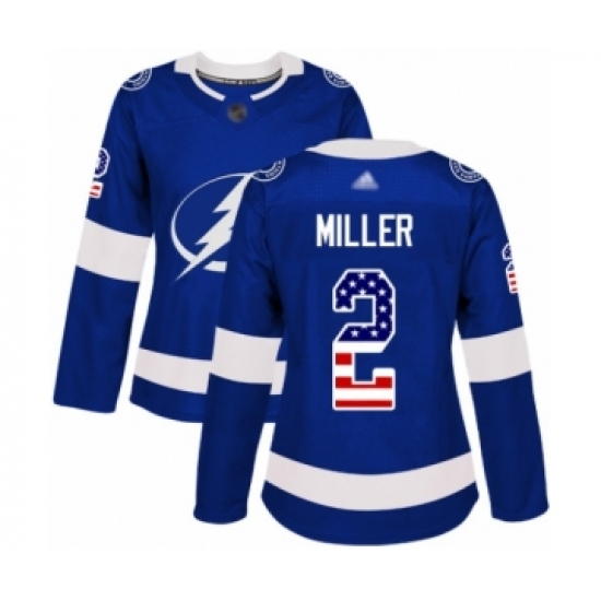 >Women's Tampa Bay Lightning #2 Luke Schenn Authentic Blue USA Flag Fashion Hockey Jersey