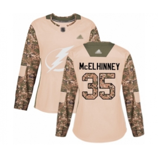 >Women's Tampa Bay Lightning #35 Curtis McElhinney Authentic Camo Veterans Day Practice Hockey Jersey