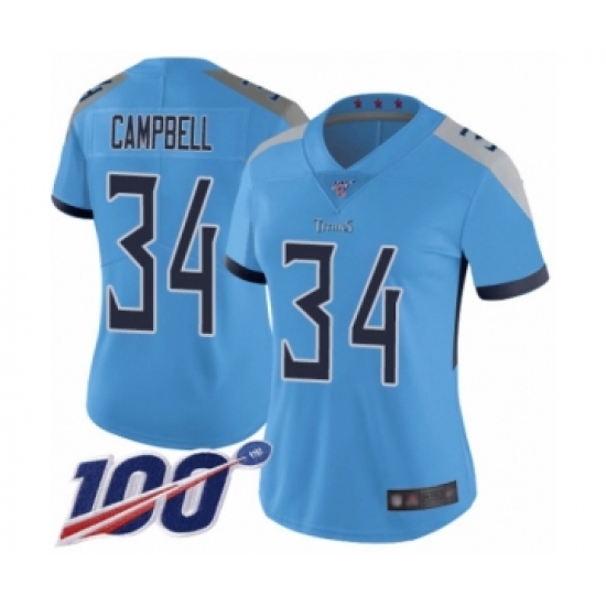 >Women's Tennessee Titans #34 Earl Campbell Light Blue Alternate Vapor Untouchable Limited Player 100th Season Football Jersey