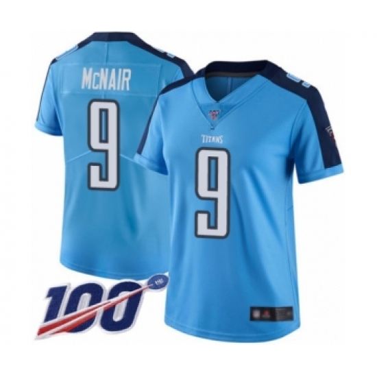>Women's Tennessee Titans #9 Steve McNair Limited Light Blue Rush Vapor Untouchable 100th Season Football Jersey