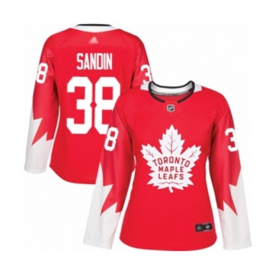Women's Toronto Maple Leafs #38 Rasmus Sandin Authentic Red Alternate Hockey Jersey