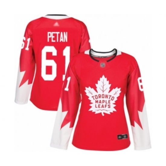 Women's Toronto Maple Leafs #61 Nic Petan Authentic Red Alternate Hockey Jersey