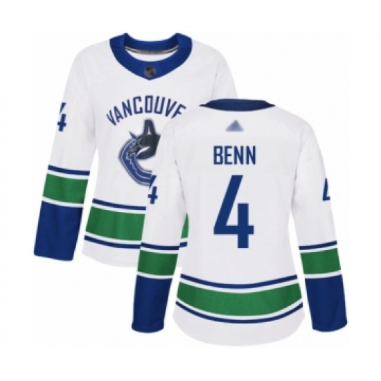 >Women's Vancouver Canucks #4 Jordie Benn Authentic White Away Hockey Jersey