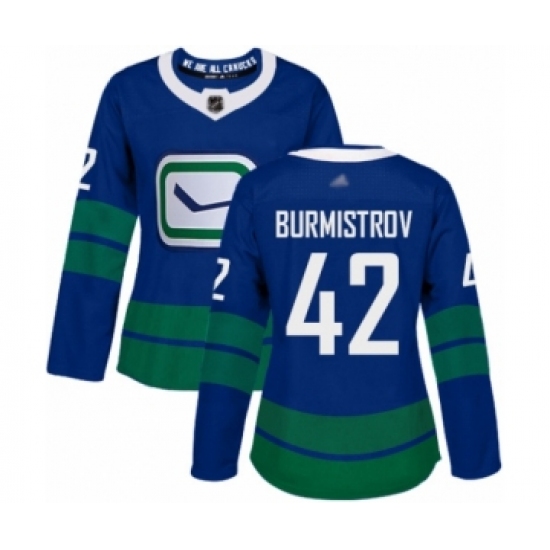 >Women's Vancouver Canucks #42 Alex Burmistrov Authentic Royal Blue Alternate Hockey Jersey