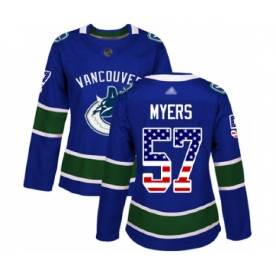 >Women's Vancouver Canucks #57 Tyler Myers Authentic Blue USA Flag Fashion Hockey Jersey