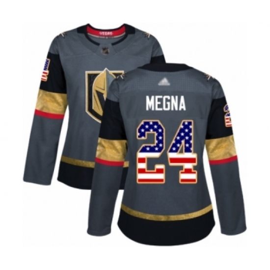 Women's Vegas Golden Knights #24 Jaycob Megna Authentic Gray USA Flag Fashion Hockey Jersey