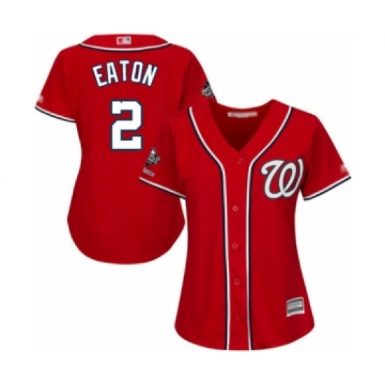 Women's Washington Nationals #2 Adam Eaton Authentic Red Alternate 1 Cool Base 2019 World Series Champions Baseball Jersey