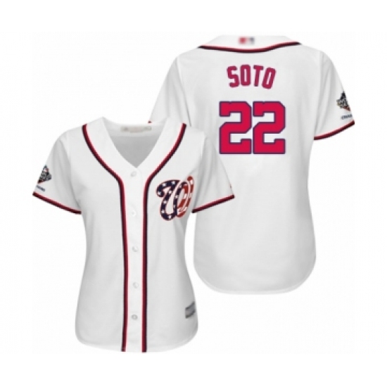 Women's Washington Nationals #22 Juan Soto Authentic White Home Cool Base 2019 World Series Champions Baseball Jersey