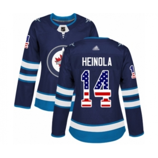 Women's Winnipeg Jets #14 Ville Heinola Authentic Navy Blue USA Flag Fashion Hockey Jersey